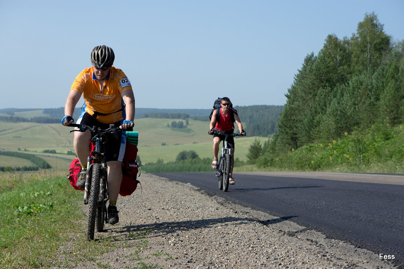 Обратную дорога до самого Малояза трудно было назвать запоминающейся. Жара, равномерное вкручивание, умеренно пакостные тягуны… А вот потом началось нечто более неприятное – сначала короткий, но весьма неприятный тягун, а потом гвоздь программы. Затяжной на несколько километров подъем на 1-1 до самого Кропачево.