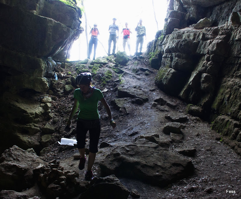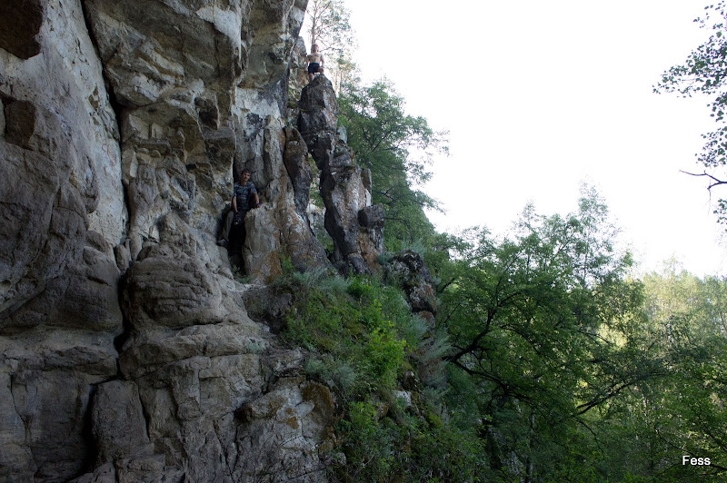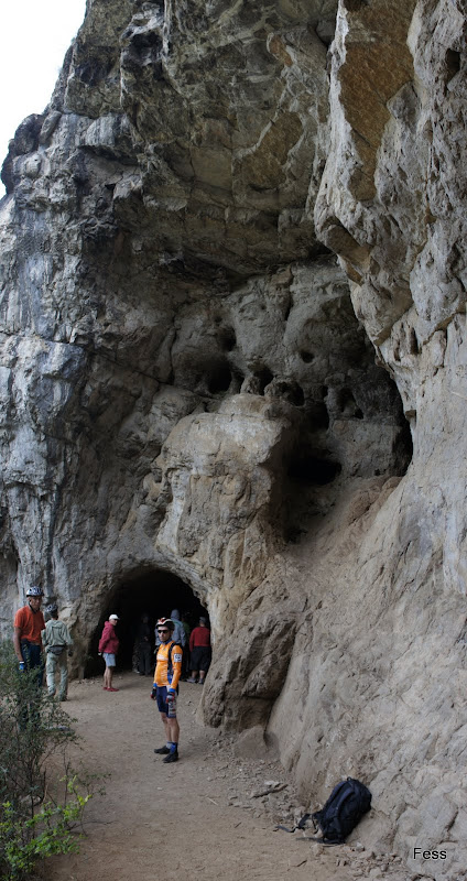 Так что и на осмотр пещер было запланировано сравнительно мало времени – примерно час. Достаточно чтобы дойти до входа и залезть в ближайшие. При этом, группа поделилась на тех, кто лезет, и тех кто остается снаружи – вид оттуда открывается роскошнейший. Узкая долина между двумя холмами, поросшими лесом, лента реки внизу… Заодно в очередной раз оценили количество проплывающих, девять разных плавсредств на полукилометровый участок реки – и это без причаленных к берегу.