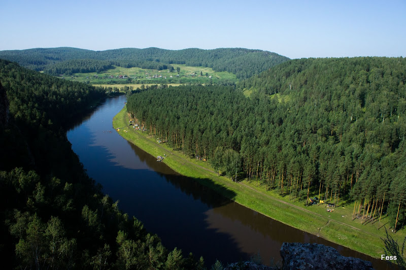 Убегая с территории Челябинской области, «лунная красавица» - река Ай свою последнюю живописную петлю закладывает у деревушки Сикияз-Тамак.